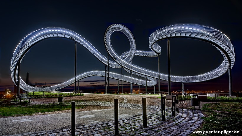 Tiger & Turtle - Magic Mountain is a sculpture and public art installation in Duisburg, Germany. It is not a traditional staircase but a spiral sculpture resembling a roller coaster. Created by artists Heike Mutter and Ulrich Genth, the artwork was unveiled in 2011. The structure provides visitors with a unique perspective of the urban landscape and has become a popular attraction in Duisburg.