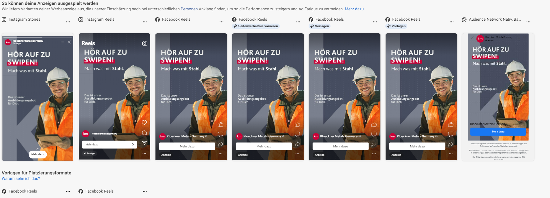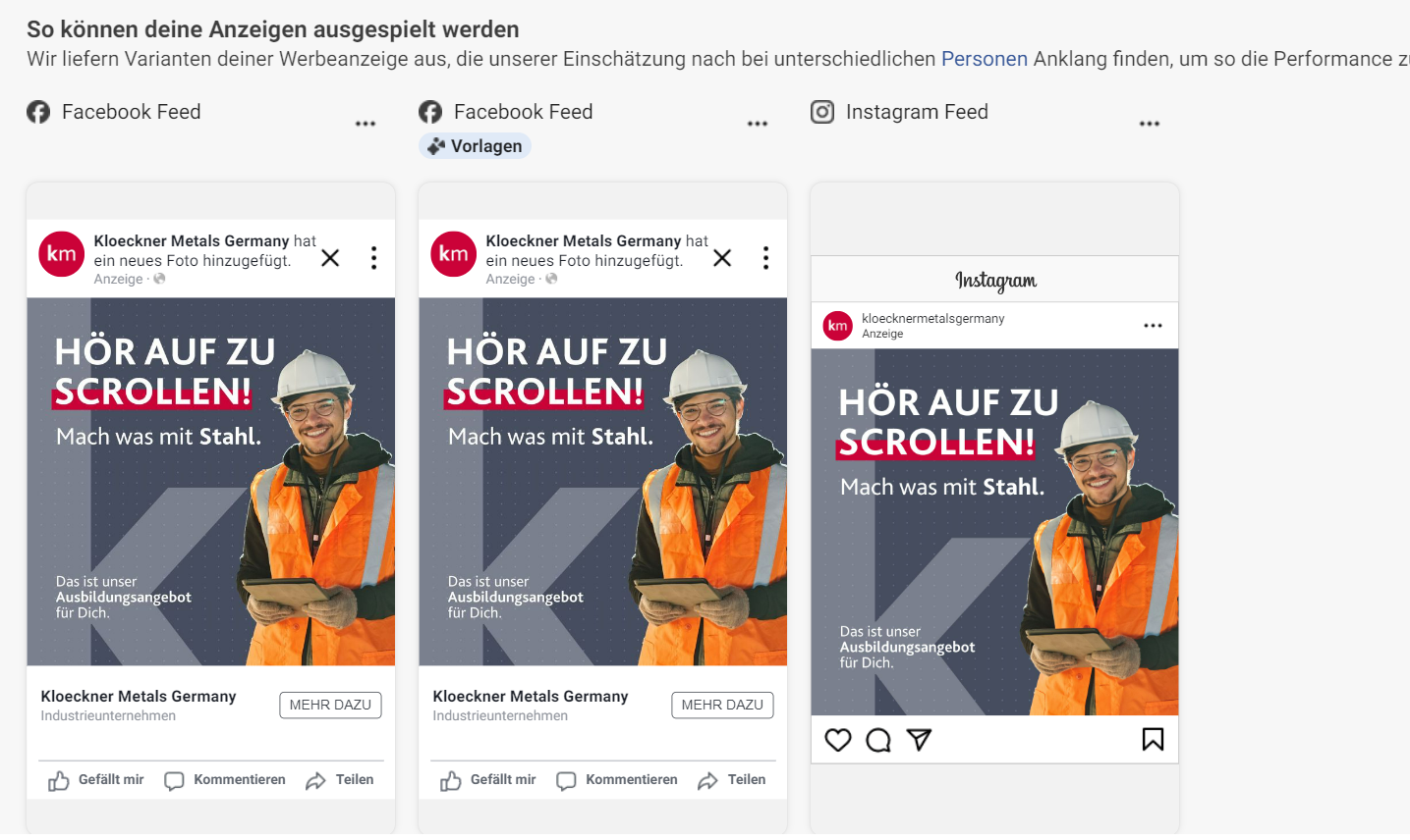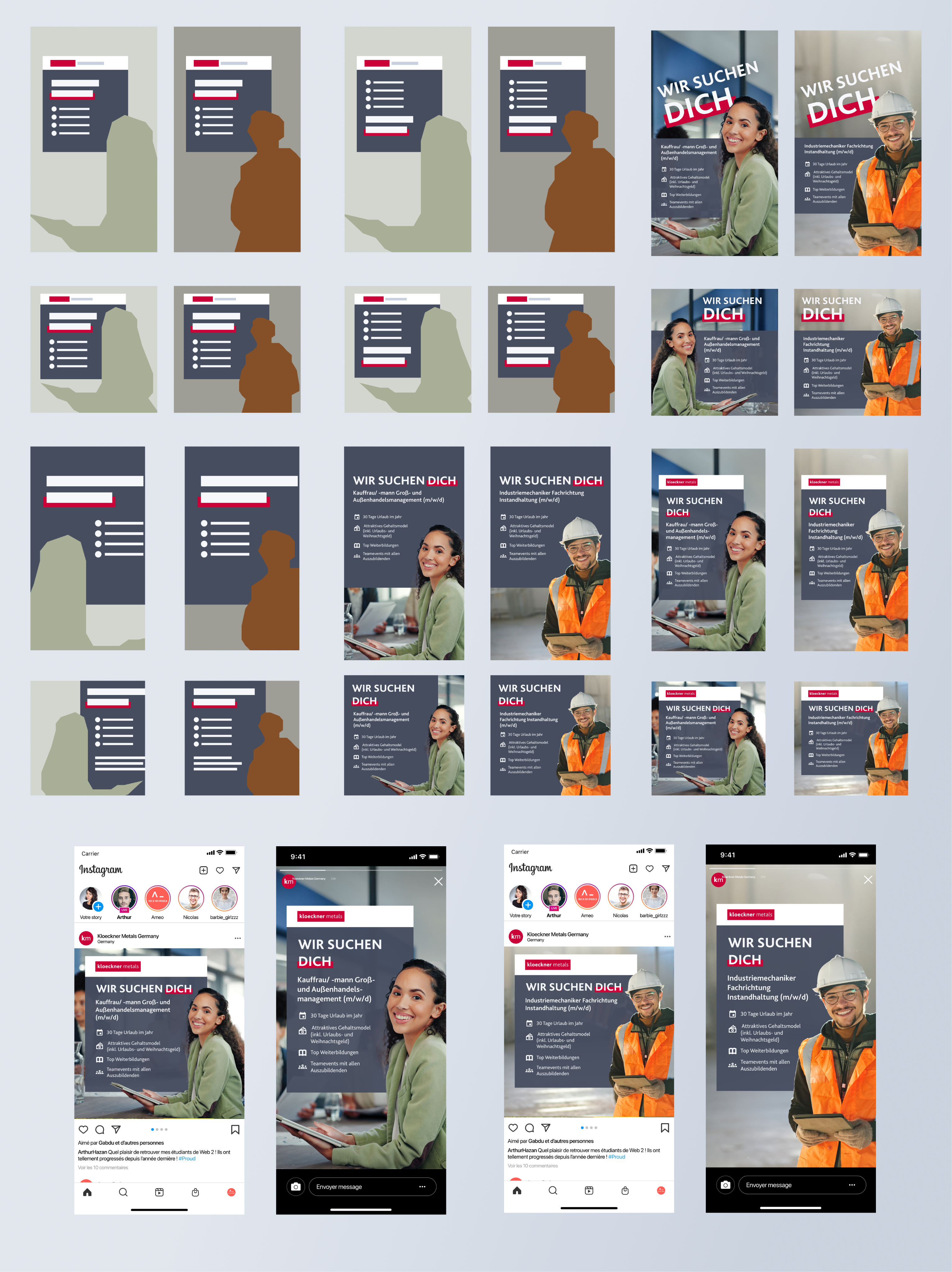 Creation of a series of Instagram posts & stories for an internship recruitment campaign at Kloeckner Metals Germany.