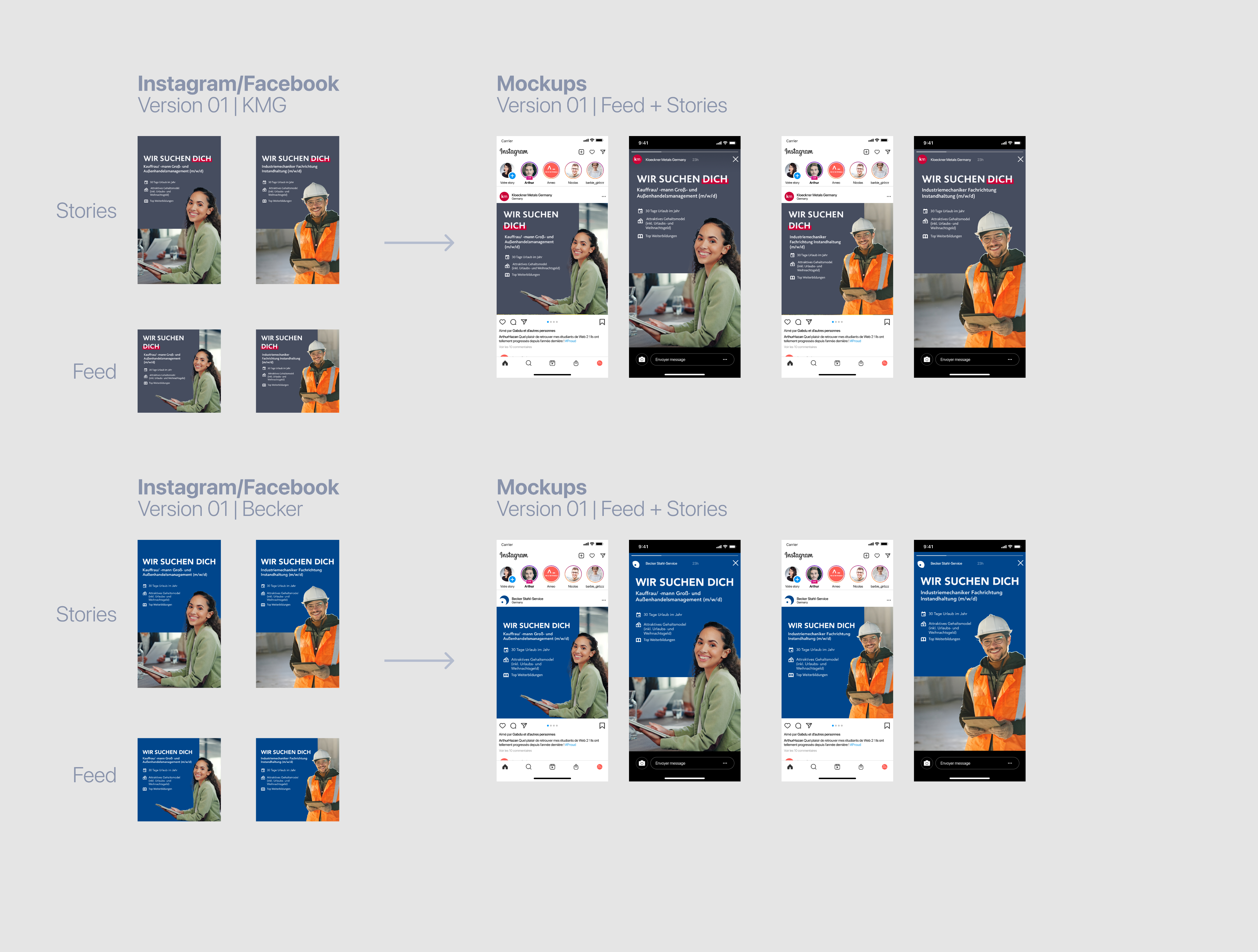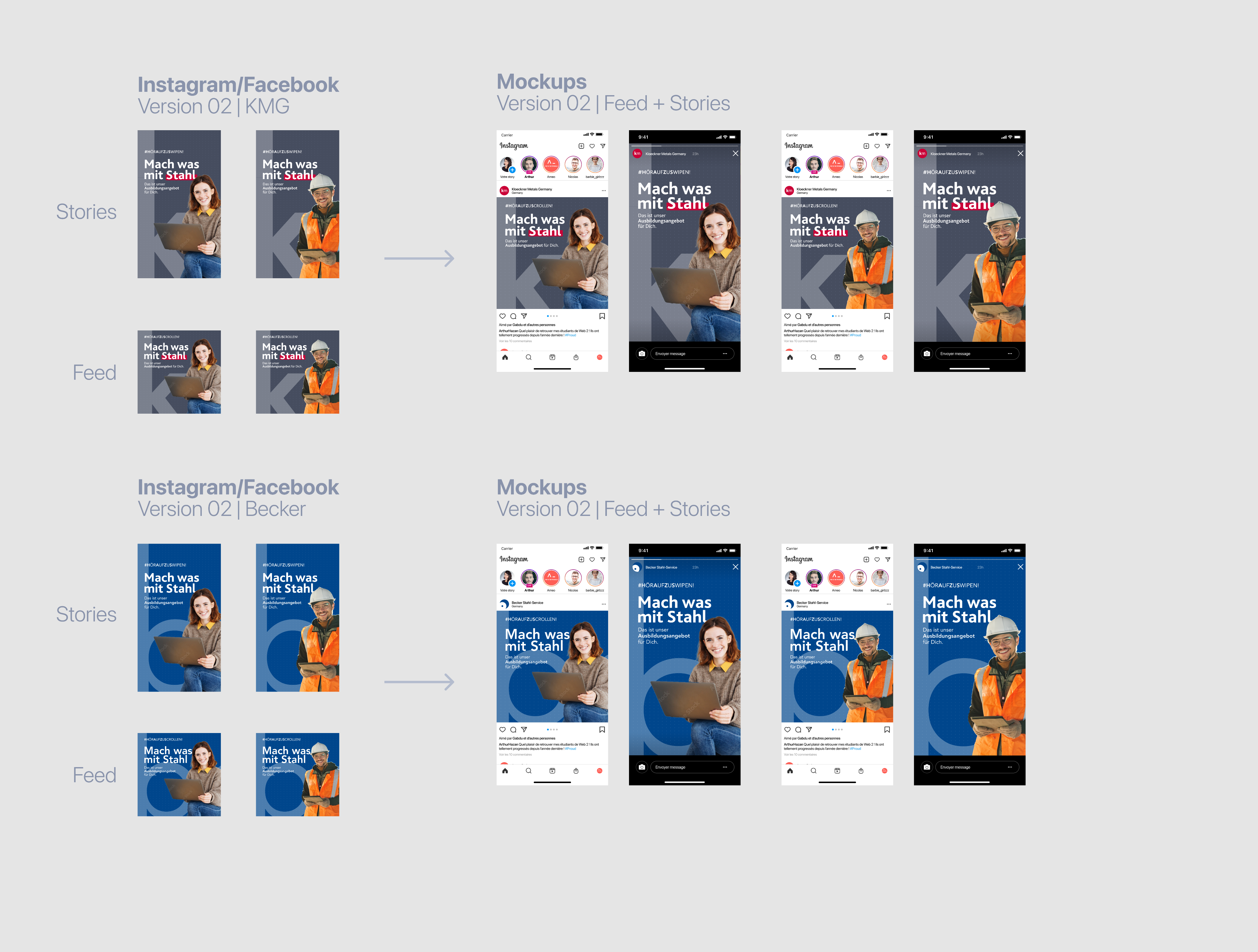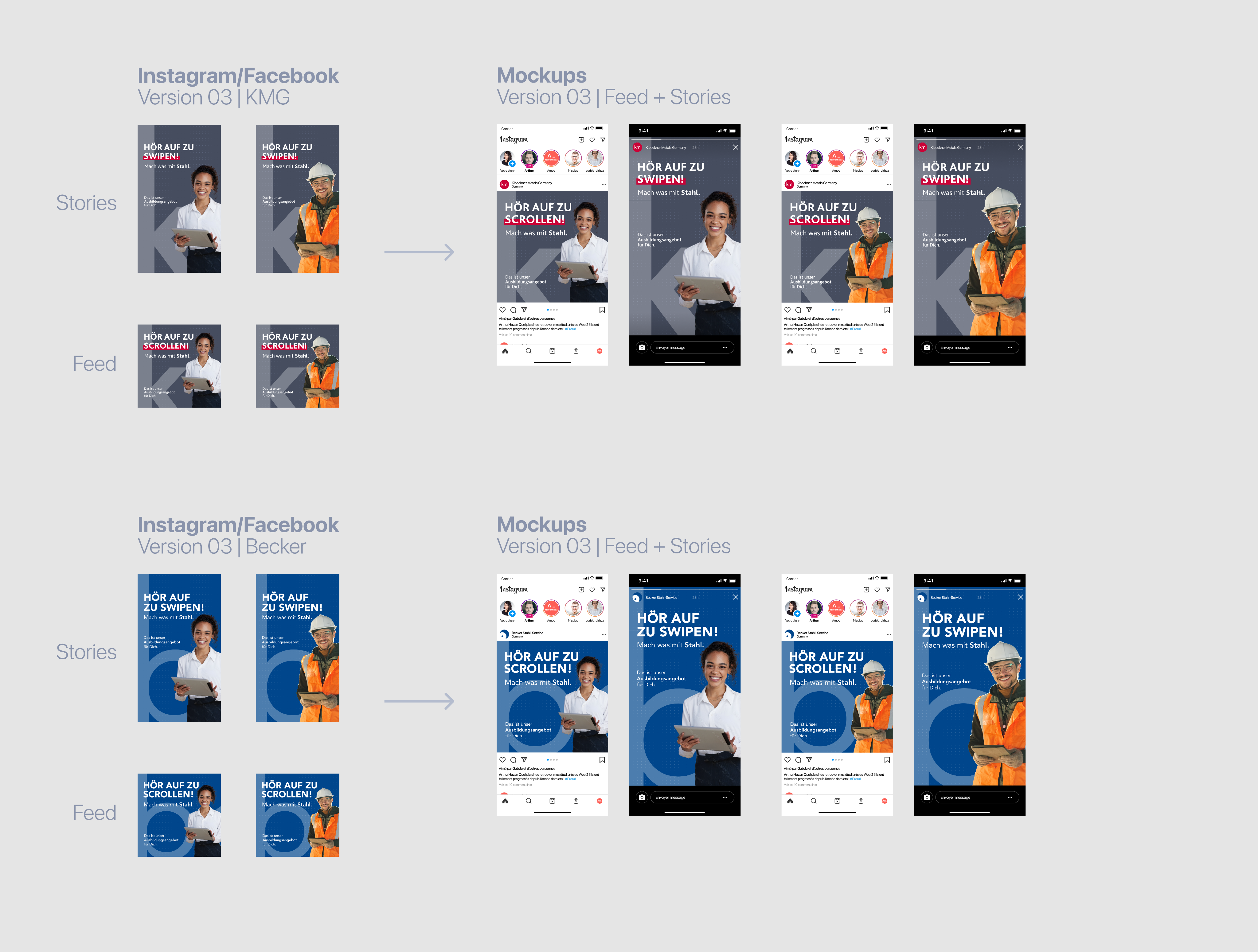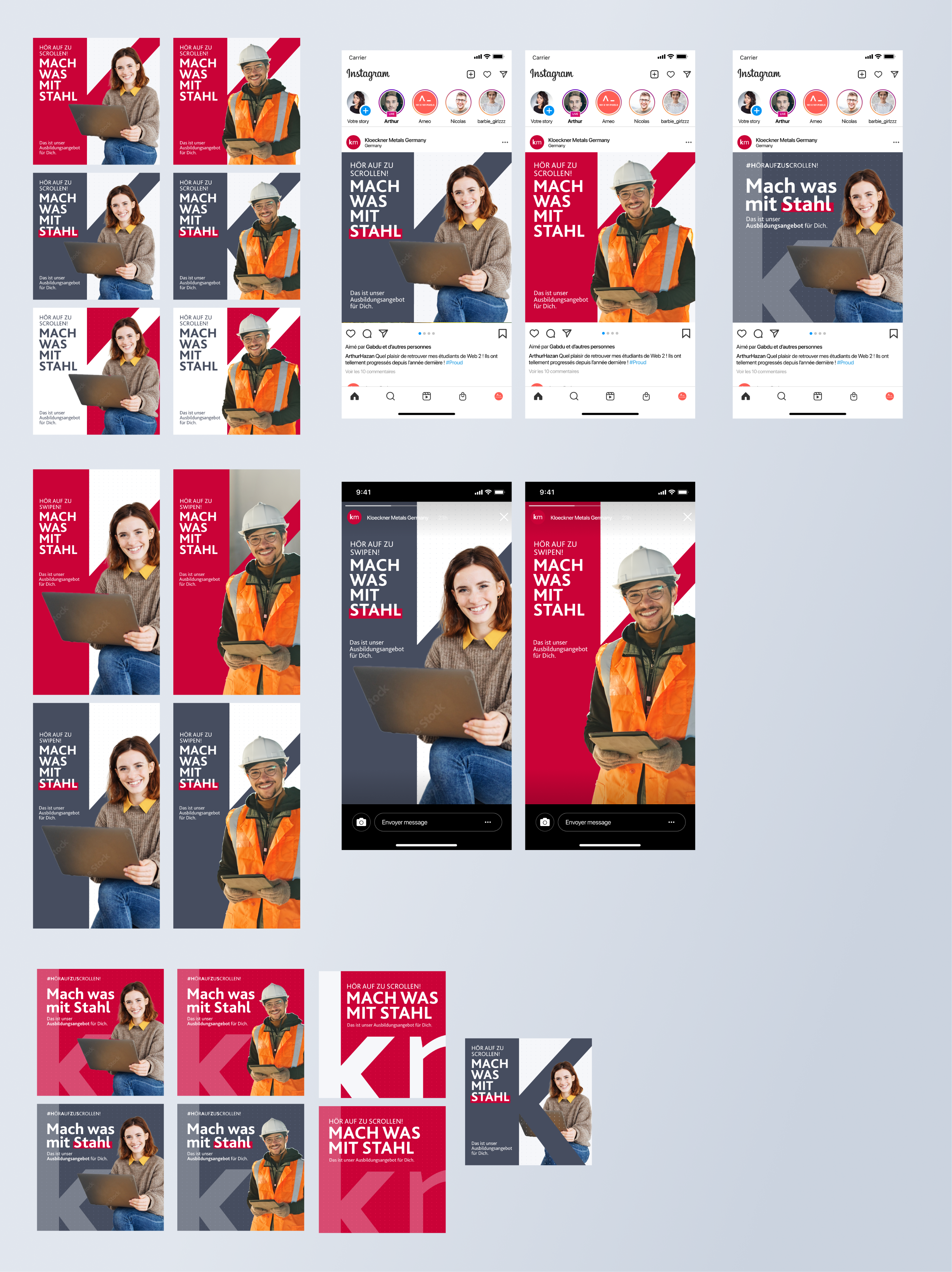 Once I presented the proposals, Kloeckner Metals Germany liked version 01 and version 03, so they decided to create a test for both designs, so we could find out which one would better perform once published on Instagram: