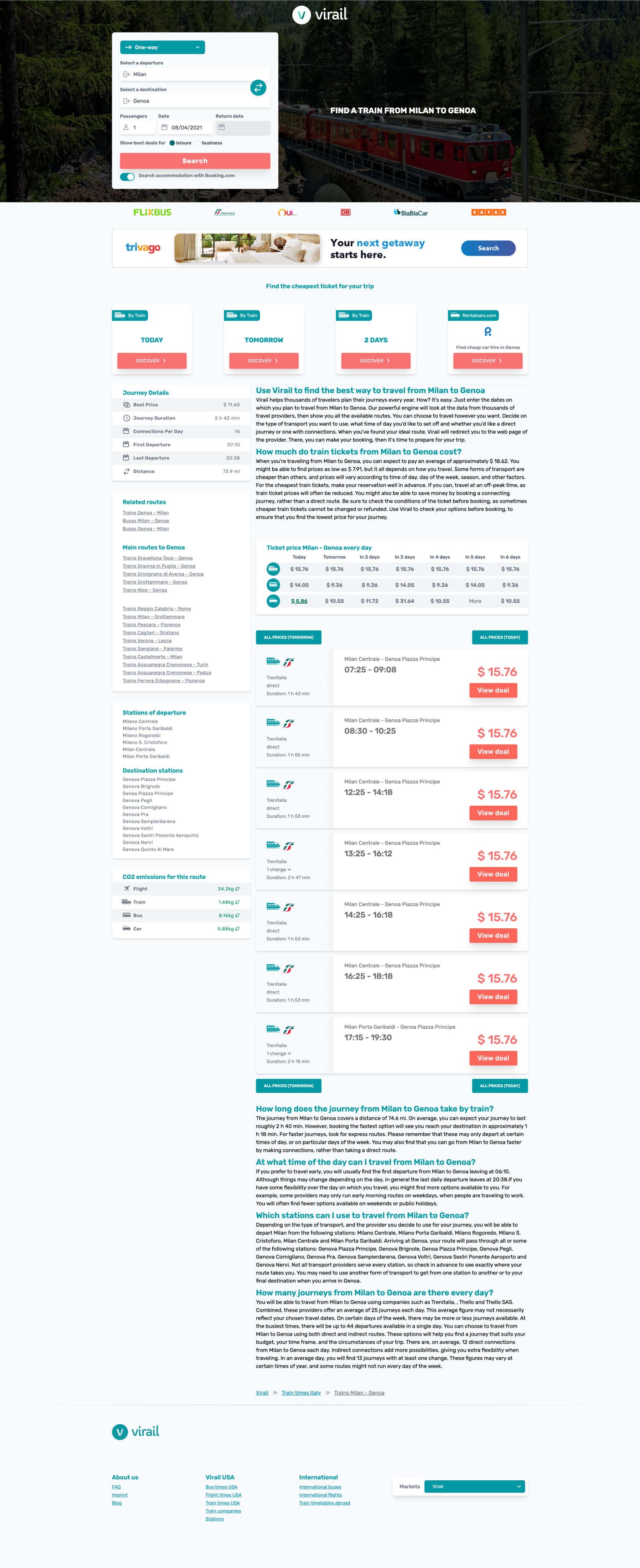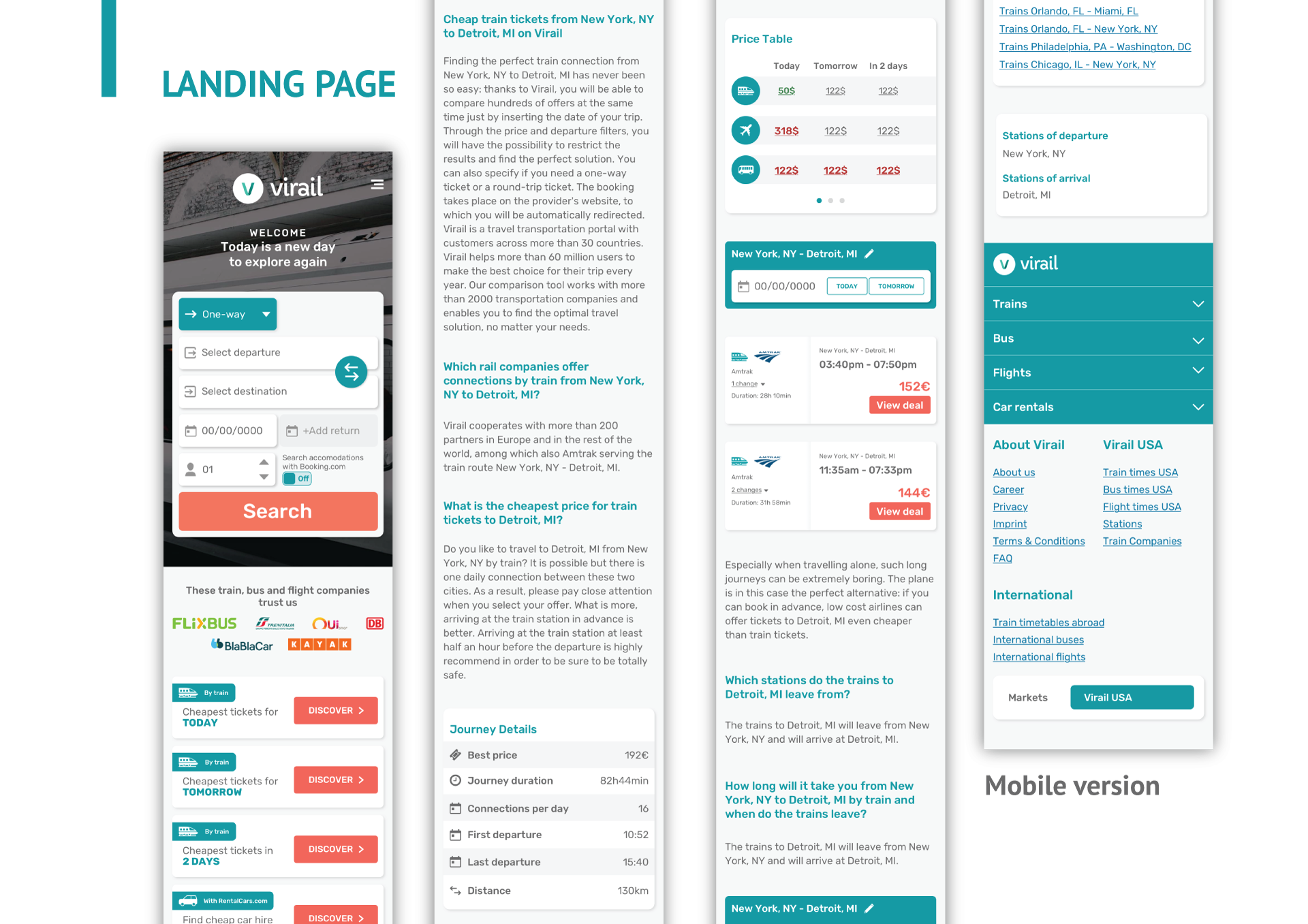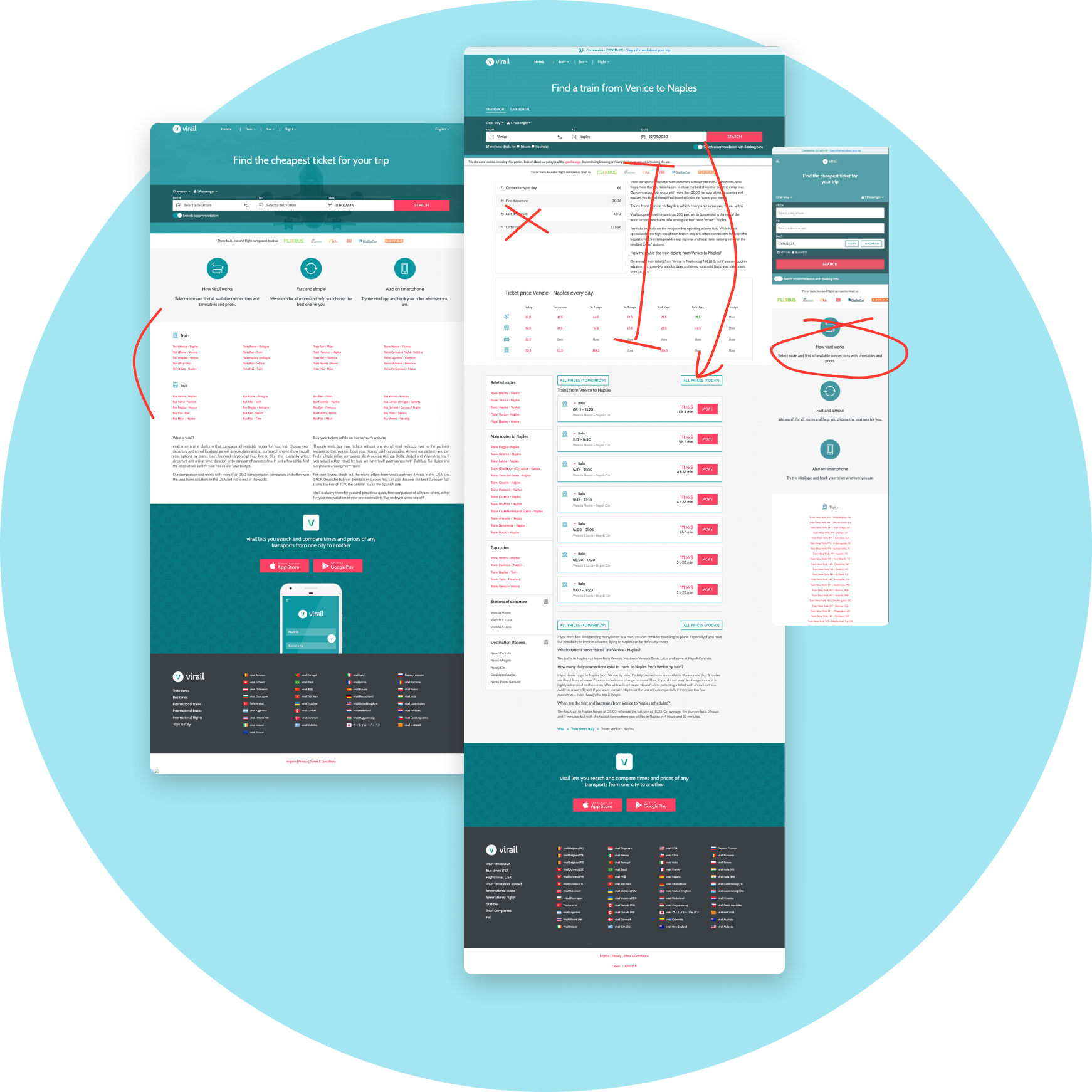 The most important page was the route landing page, where the user first lands at the Virail’s website, after searching for their desirable route on Google. After the research data analytics, I could point out the major issues the main page had and how could it be costing Virail its users: