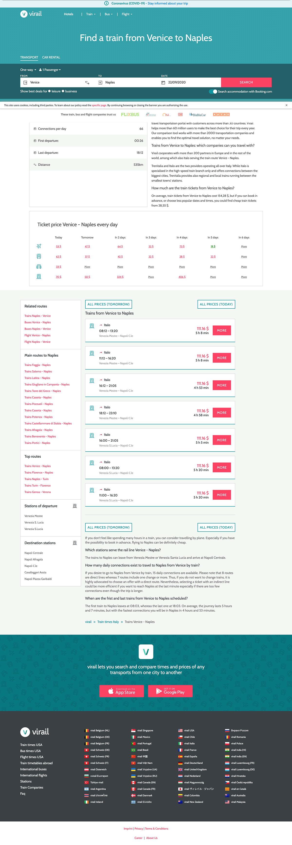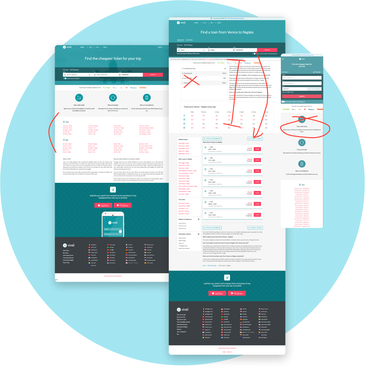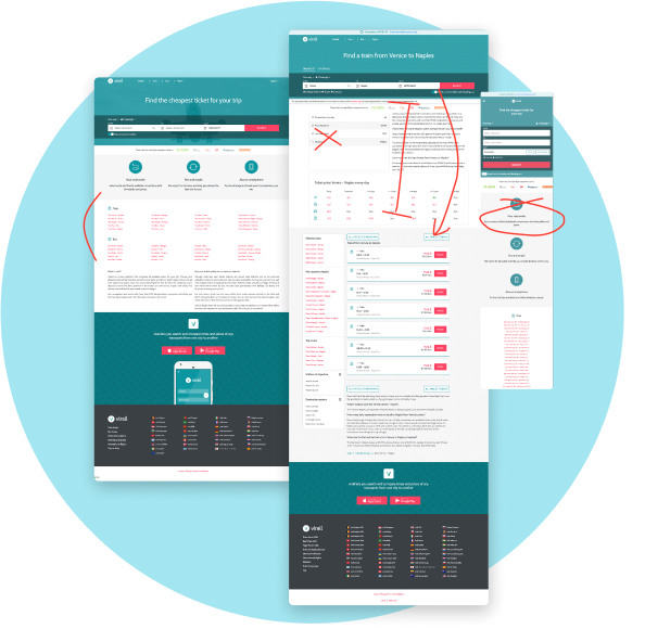 The most important page was the route landing page, where the user first lands at the Virail’s website, after searching for their desirable route on Google. After the research data analytics, I could point out the major issues the main page had and how could it be costing Virail its users: