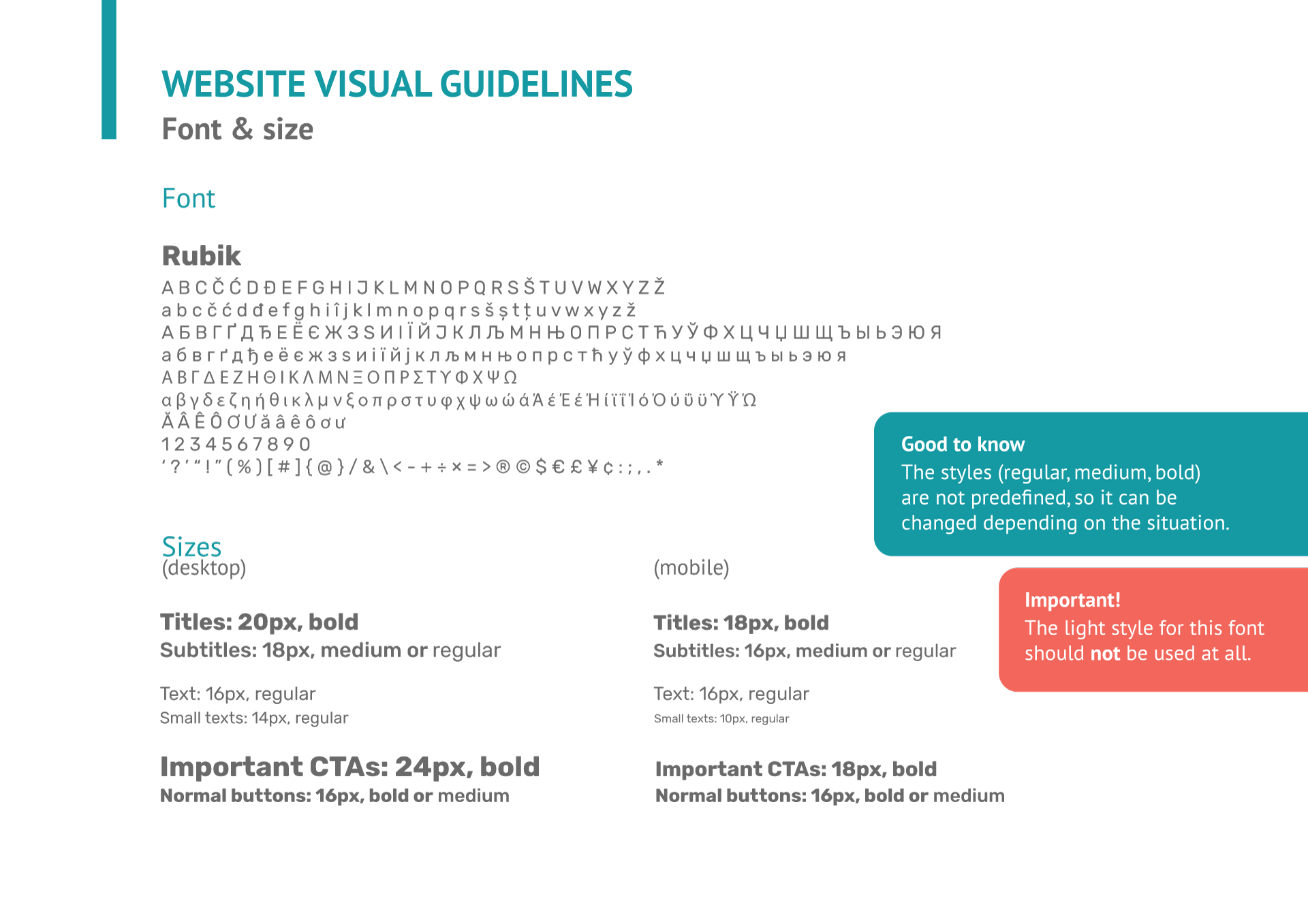 From the most important page of the user journey, I started by defining a new visual for the brand. I created a brand guide book, where all aspects of the business and brand where defined. By selecting a new font style that had all language’s characters, multiple font thickness options and a new colour palette, I could start creating a new design system.