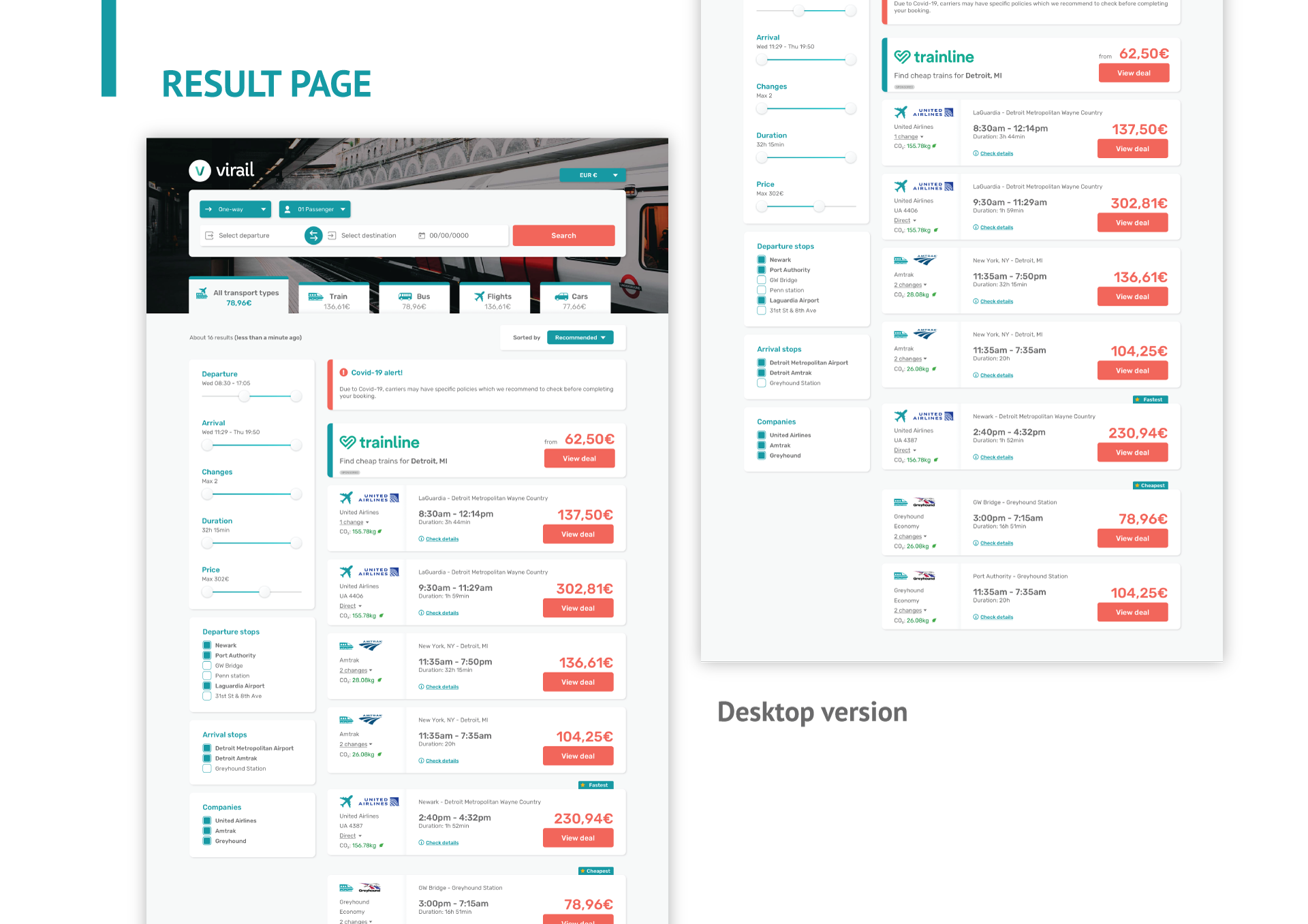 This feature was an interesting element that set Virail apart from its competition - a way to quickly check and compare different transportation prices for the next days for a specific route. This kind of feature was also a blind spot, since users would quickly skip this section (the hypothesis were that the number 2 had tired the user up, making them numbly scroll down the page)